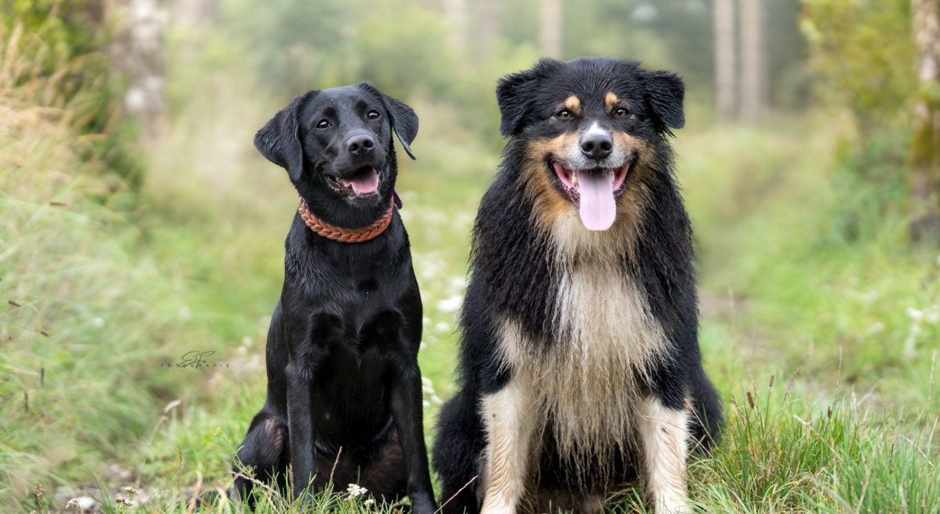Kennt ihr das? Kaum zeigt sich draußen das typische Schmuddelwetter, sind unsere Hunde kaum zu bremsen. So auch Phoebe und ihr Kumpel Jaro: Nach einem ausgiebigen Spaziergang durch Wald und Wiesen sitzen die beiden zufrieden nebeneinander – glücklich, nass und natürlich voller Matsch!